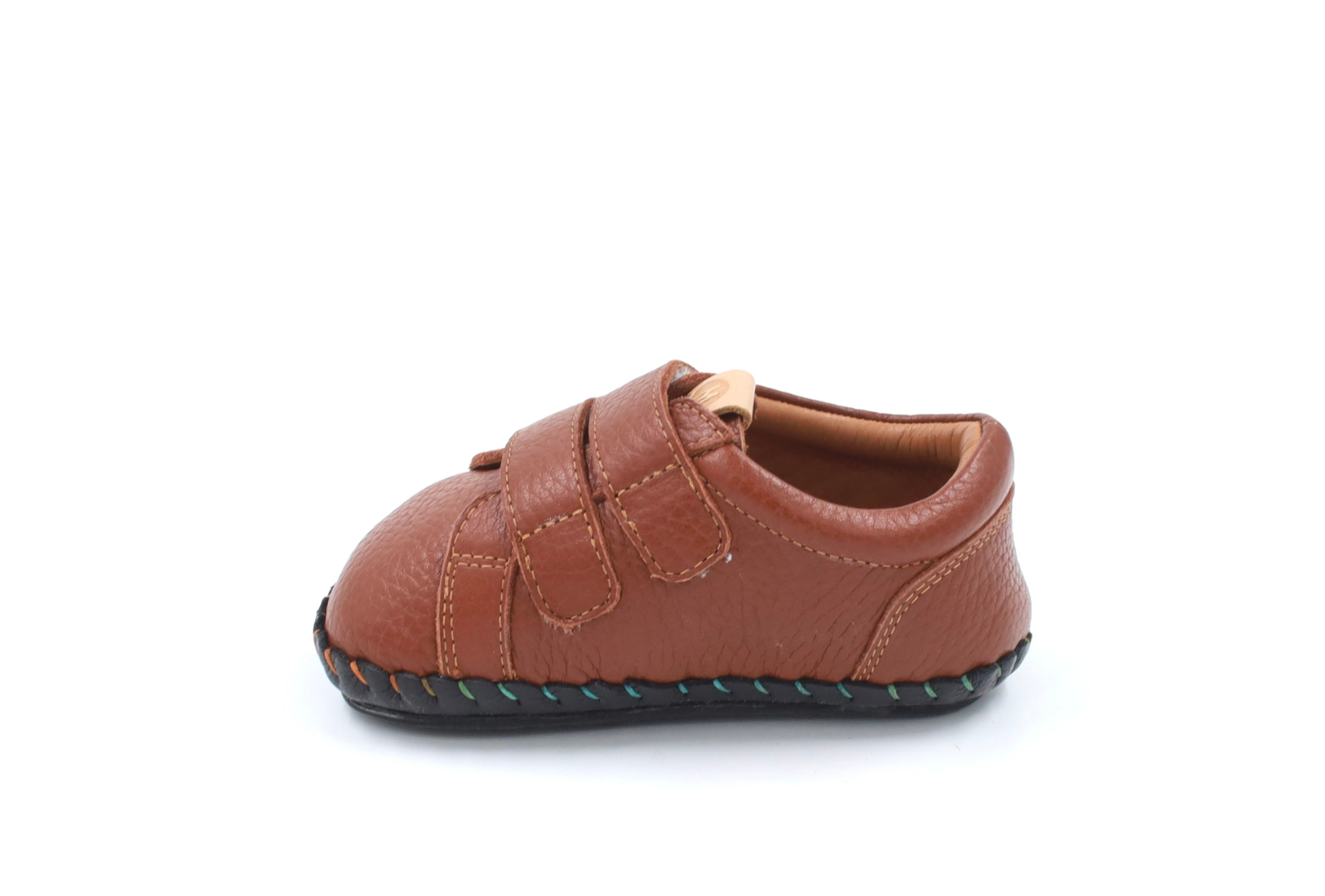 Elastyczna skórzana podeszwa z cienką warstwą gumy umożliwia stopie pełną mobilność i kontakt z podłożem. Dzięki temu dziecko uczy się prawidłowego obciążania stóp, rozwija równowagę i stabilność, a każdy krok jest dla niego intuicyjny i bezpieczny.