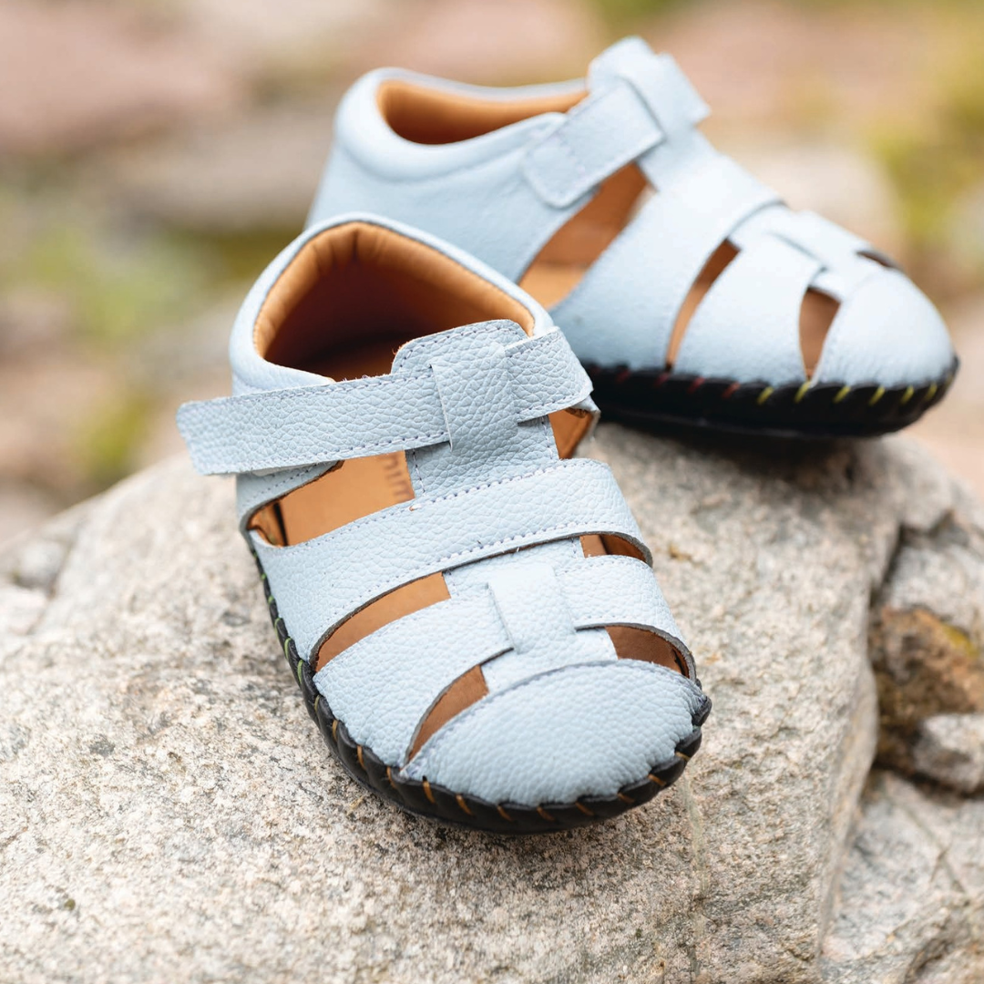 Sandałki Minimus Little Sanderling to lekkie buty barefoot stworzone specjalnie dla maluchów stawiających pierwsze kroki. Ich konstrukcja wspiera naturalny rozwój stopy – szeroki przód pozwala palcom swobodnie się rozkładać, a elastyczna podeszwa umożliwia naturalną pracę mięśni stopy.